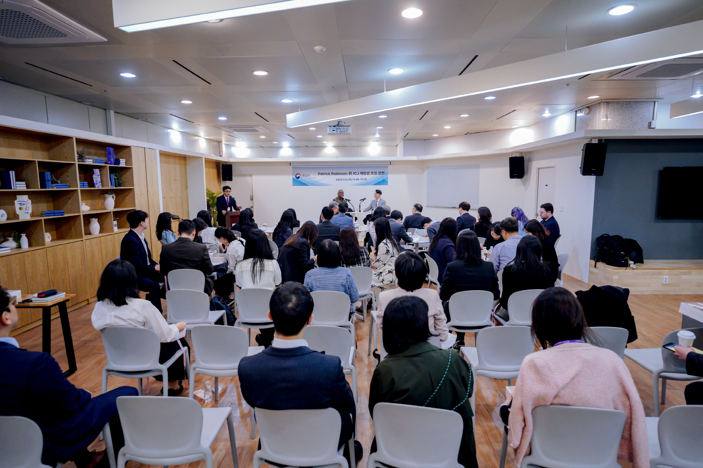 외교부는 5.8.(목) 「패트릭 립튼 로빈슨(Patrick Lipton Robinson)」 前 국제사법재판소(ICJ) 재판관을 초청하여 외교부 직원, 국내 국제법 학자, 대학·대학원생 등 90여 명을 대상으로 특별 강연을 개최했습니다.